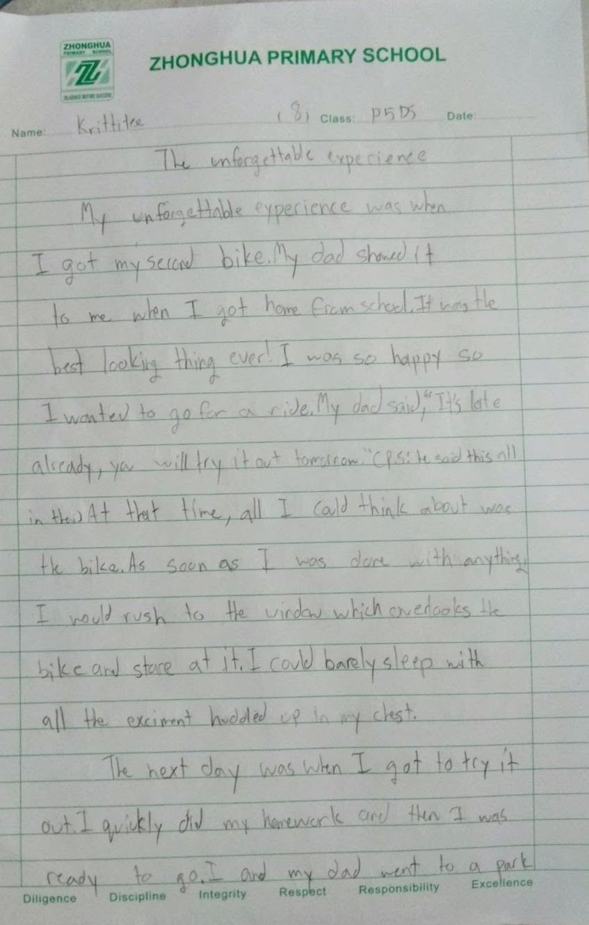 แล้วหม่าม๊าก็โทร video call ไปคุย ม่อนสบายใจ การบ้านเสร็จแล้ว คุยเล่นกับหม่าม๊า และยังขอว่า เมื่อกลับไทย อยากกินสปาเก็ตตี้ฝีมือป่าป๊าด้วย แล้วก็เล่าให้ฟังว่า eng composition นี้ เป็นการเขียนแบบ มุมมองของผู้เขียน เล่าว่าเขียนเกี่ยวกับจักรยานของม่อน ที่ได้มา แล้วก็มีโอกาสขี่เฉพาะตอนอยู่ไทย