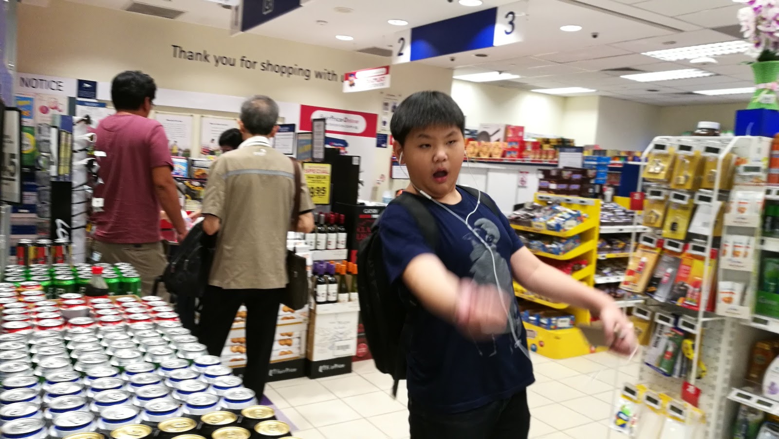 ถึงสิงคโปร์บ่ายโมง ซื้อของกินที่ แฟร์ไพรซ์ ที่ PTB2 ม่อนอยากหม่ำโค้ก เลยซื้อให้หม่ำ ก่อนเดินทางด้วยรถเมล์ไป garden way