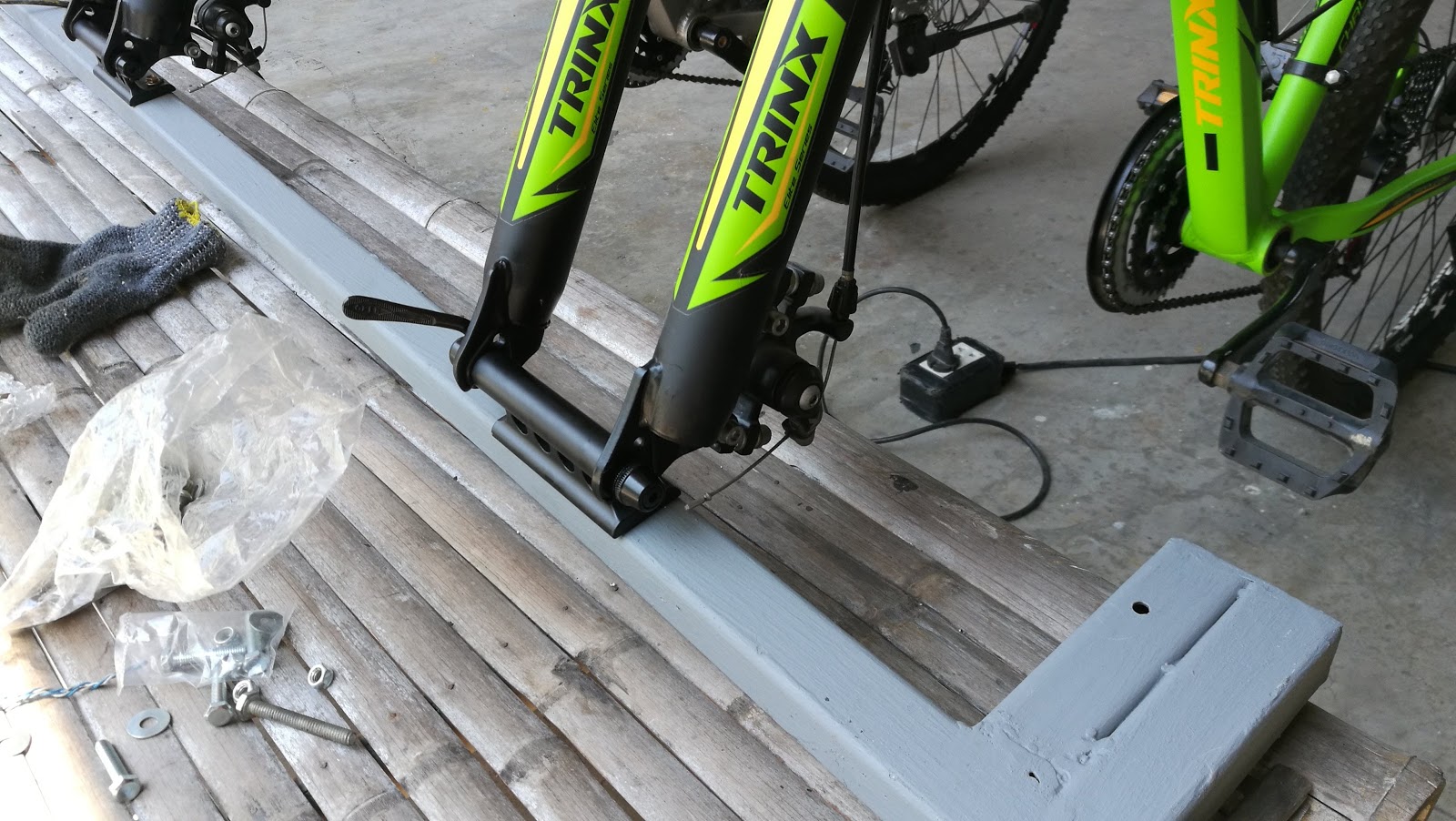ป่าป๊าวันนี้ก็สั่งลูกน้อง ให้ทำที่ยึดจักรยานต่อ ก็ทำเสร็จแล้ว สั่งให้ทาสีแล้วเอาไปติดตั้ง