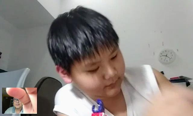 ป่าป๊าโทร.ไป เพื่อจะทวนภาษาจีนกับม่อน บอกให้ม่อนเตรียมตัว แล้วป่าป๊าก็มาอ่านการบ้านจีน เสร็จแล้วก็ต่อวีดีโอคอลไปหาม่อน ทวนจีนกัน
