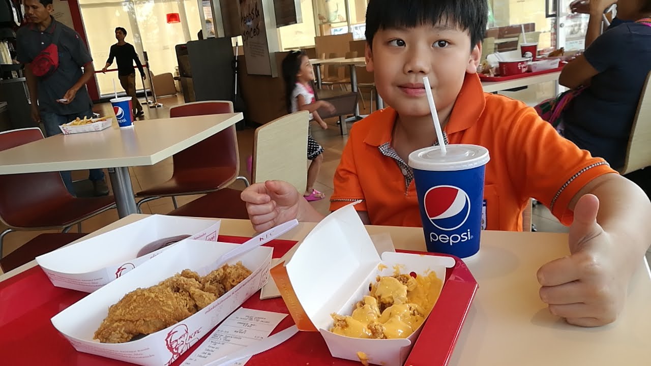 ตอนบ่ายๆ ป่าป๊าไปรับโมชิ ตอนแรกหม่าม๊าจะไปรับ แต่กลับจากพาอาม่าไป รพ. มารร. ก็รถติดมากไปไม่ไหว ให้ป่าป๊าไปแทน ป่าป๊ารับโมชิกลับมาก็พาไปกินเคเอฟซี