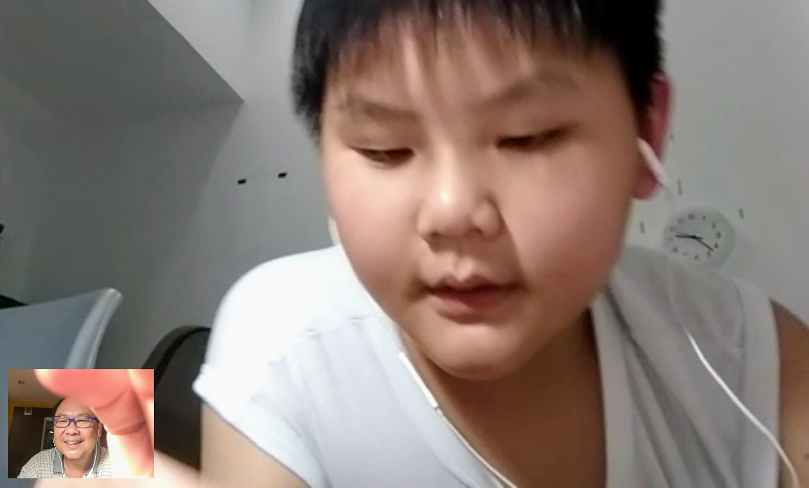 ป่าป๊าโทร.ไป เพื่อจะทวนภาษาจีนกับม่อน บอกให้ม่อนเตรียมตัว แล้วป่าป๊าก็มาอ่านการบ้านจีน เสร็จแล้วก็ต่อวีดีโอคอลไปหาม่อน ทวนจีนกัน