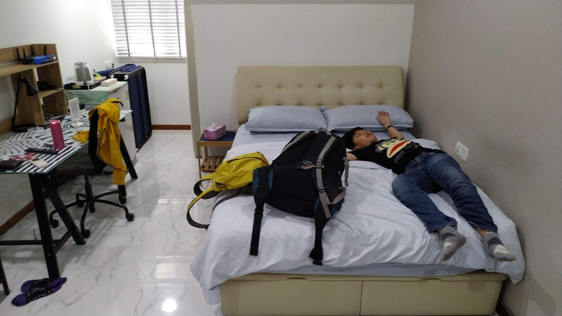 เราแวะกินอาหารที่ staff canteen terminal 2 แล้วก็เดินทางโดยนั่งรถเมล์สาย 24 เมื่อมาถึงฝนกำลังตกนิดๆ เรารออีกแป๊บนึงฝนก็หยุดเราเลยเดินเข้าบ้านกัน เป็นบ้านหลังเดิม คราวนี้เจอเจ้าของบ้านซาชาลี ป่าป๊ากับโมชิเข้าห้องโมชินอนเล่น ป่าป๊าจัดเสื้อผ้าสำหรับใส่วันพรุ่งนี้ เอาแขวนไว้เตรียมไว้ให้พร้อม